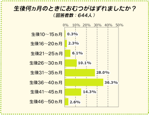ベビータウンの調査によれば、乳幼児のおむつが外れた月齢で最も