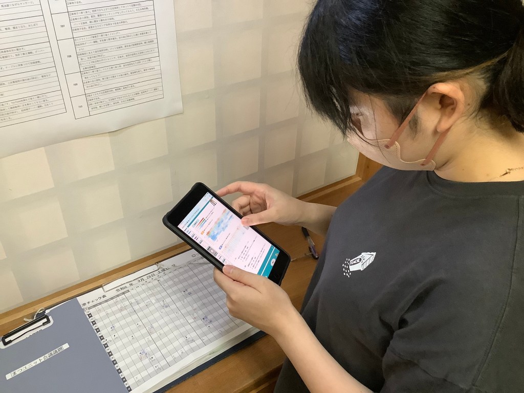 トイレ誘導の方は「そろそろ通知」、パッド交換の方は「でたかも通知」機能を主に活用しています。DFree使用期間中は同時に尿測も実施して、利用者さまの尿量に合わせたパッドの選定も行っています。